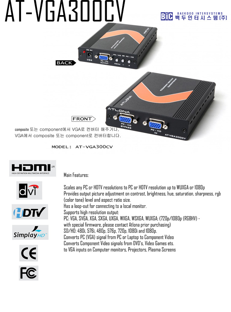 SDI, Component, AES-3 ½ÅÈ£¸¦ ÀÔ·Â ¹Þ¾Æ ¸ð´ÏÅ͸µ ÇÏ´Â Àåºñ SDI to Component, Composite ÀÇ Transcoding ±â´É NTSC, PAL Composite Áö¿ø, RS-232 ÄÁÆ®·Ñ ÀÔ·Â ½ÅÈ£¼¼±â, gamut, ÁöÅÍ, EDH¿¡·¯ ¸ð´ÏÅ͸µ Áö¿ø ÀÔ·Â : SDI, Component, AES-3 Ãâ·Â : Component, SDI, Composite, AES-3 Àü¿ø : 100-240 VAC, 50/60 Hz |