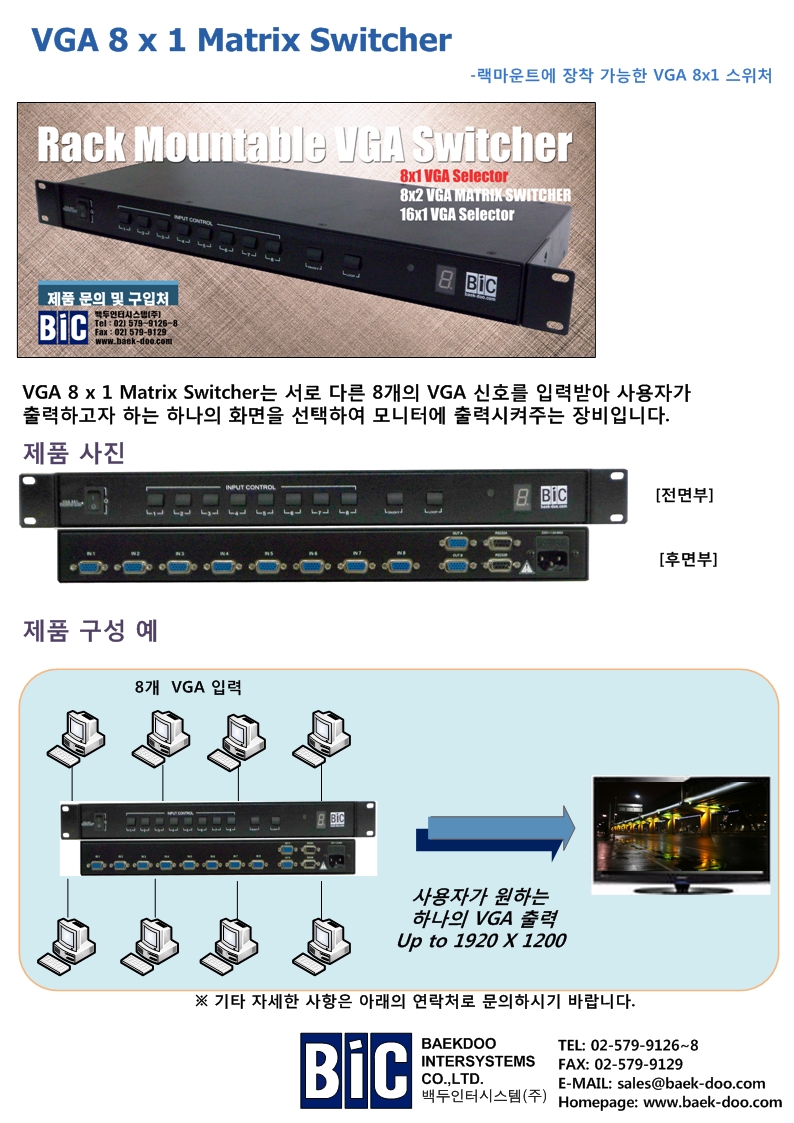 *8°³ÀÇ VGA½ÅÈ£¸¦ ¹Þ¾Æ ÇϳªÀÇ ½ÅÈ£¸¦ ¼±ÅÃÇÏ¿© Ãâ·Â½ÃŰ´Â ÀåºñÀÔ´Ï´Ù.
