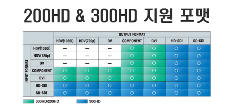VideoÀÔ·Â : IEEE1394, Component, DVI, SD/HD-SDI VideoÃâ·Â : IEEE1394, DVI, SD/HD-SDI AudioÀÔ·Â : IEEE1394, Nonlinear, Analog(XLR,RCA), SD/HD-SDI Embedded audio AudioÃâ·Â : IEEE1394, Analog(XLR,RCA), SD/HD-SDI Embedded audio