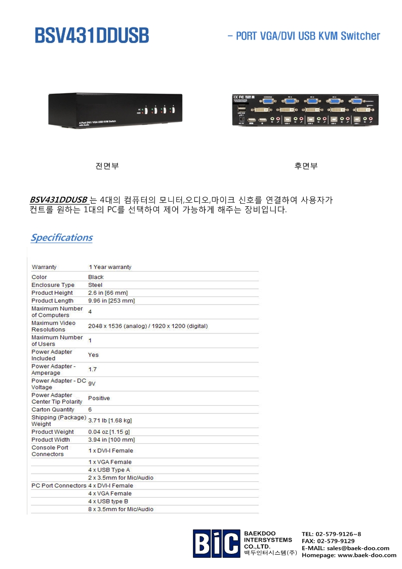 *Ãâ·Â : 1 x VGA , 1 x DVI , 2 x USB , 1 x Speaker/MIC