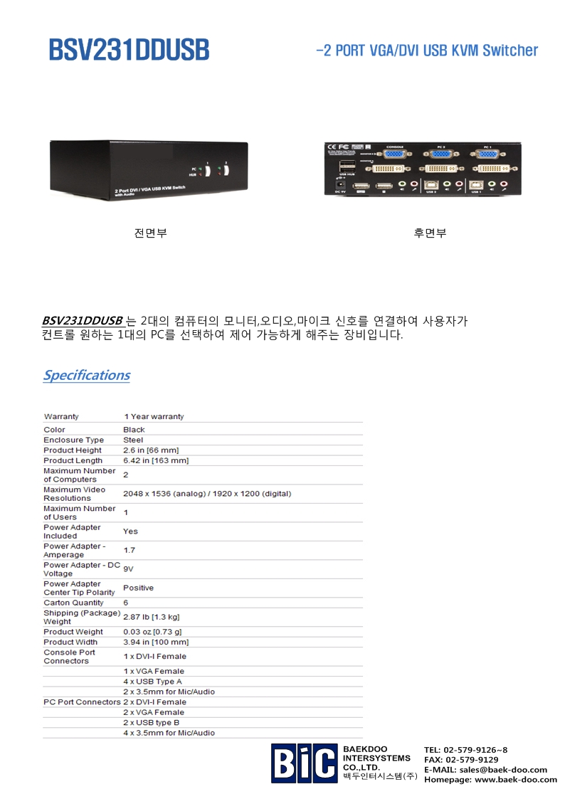 *Ãâ·Â : 1 x VGA , 1 x DVI , 2 x USB , 1 x Speaker/MIC