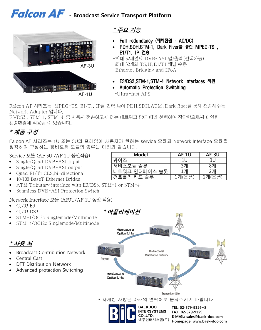 DVB-ASI, E1/T1, IP¸¦ ÀÔ·Â¹Þ¾Æ E3/DS3 , STM-1/ STM-4 ¶Ç´Â Dark Fiber¸¦ ÅëÇØ Àü¼ÛÇØÁÖ´Â ±¤´ë¿ª ³×Æ®¿öÅ© ¾Æ´äÅÍ