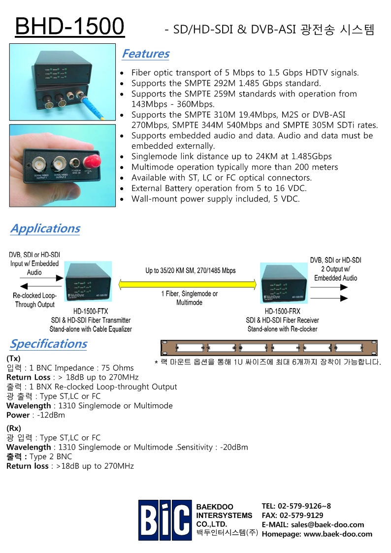 BHD-1500 - SD/HD-SDI & DVB-ASI ±¤Àü¼Û