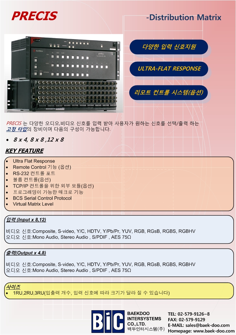 ![]() Precis ´Ù¾çÇÑ ¿Àµð¿À,ºñµð¿À ½ÅÈ£¸¦ ÀÔ·Â ¹Þ¾Æ »ç¿ëÀÚ°¡ ¿øÇÏ´Â ½ÅÈ£¸¦ ¼±ÅÃ/Ãâ·Â ÇØÁÖ´Â Àåºñ *ÀÔ·Â ºñµð¿À ½ÅÈ£:Composite, S-video, Y/C, HDTV, Y/Pb/Pr, YUV, RGB, RGsB, RGBS, RGBHV ¿Àµð¿À ½ÅÈ£:Mono Audio, Stereo Audio , S/PDIF , AES 75§Ù *Ãâ·Â ºñµð¿À ½ÅÈ£:Composite, S-video, Y/C, HDTV, Y/Pb/Pr, YUV, RGB, RGsB, RGBS, RGBHV ¿Àµð¿À ½ÅÈ£:Mono Audio, Stereo Audio , S/PDIF , AES 75§Ù