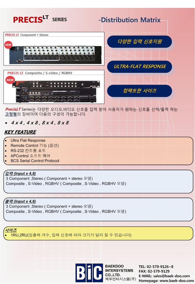 ![]() Precis LT ´Ù¾çÇÑ ¿Àµð¿À,ºñµð¿À ½ÅÈ£¸¦ ÀÔ·Â ¹Þ¾Æ »ç¿ëÀÚ°¡ ¿øÇÏ´Â ½ÅÈ£¸¦ ¼±ÅÃ/Ãâ·Â ÇØÁÖ´Â Àåºñ *ÀÔ·Â 3 Component , Stereo ( Component + Stereo ¸ðµ¨) Composite , S-Video , RGBHV (Composite , S-Video , RGBHV ¸ðµ¨) *Ãâ·Â 3 Component ,Stereo ( Component + stereo ¸ðµ¨) Composite , S-Video , RGBHV ( Composite , S-Video , RGBHV ¸ðµ¨)