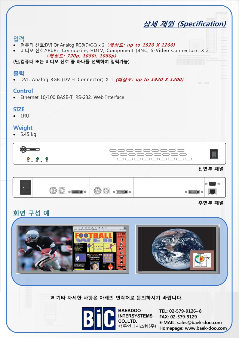 ÀÔ·Â *ÄÄÇ»ÅÍ ½ÅÈ£:DVI Or Analog RGB(DVI-I) x 2 *ºñµð¿À ½ÅÈ£:YPbPr, Composite, HDTV, Component X 2
