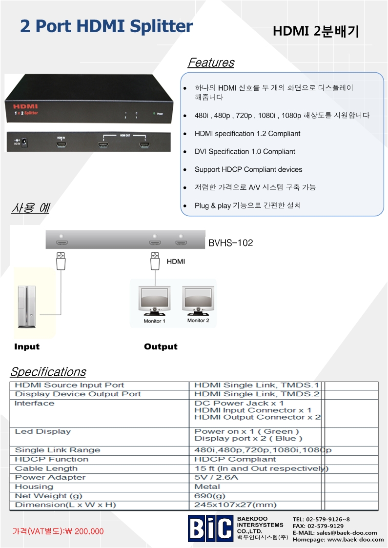 ÇϳªÀÇ HDMI ½ÅÈ£¸¦ ÀÔ·Â¹Þ¾Æ 2°³·Î ºÐ¹èÇÏ´Â Àåºñ