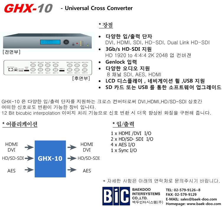 *ÀÔ/Ãâ·Â : 1 x HDMI/DVI , 2 x HD/SD-SDI, 4 x AES , 1 x Sync
