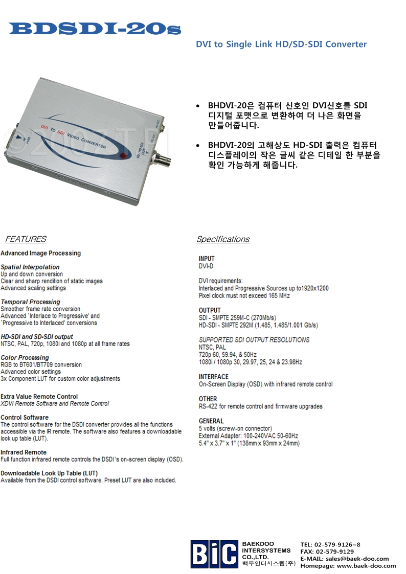 ÄÄÇ»ÅÍ ½ÅÈ£ÀÎ DVI½ÅÈ£¸¦ ÀÔ·Â¹Þ¾Æ ¹æ¼Û½ÅÈ£ÀÎ HD/SD-SDI ½ÅÈ£·Î ¹Ù²ãÁÖ´Â Àåºñ